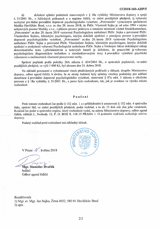 Jmenuji se Jan Sojka a jsem akreditovaný dopravní psycholog schválený Ministerstvem dopravy ČR.